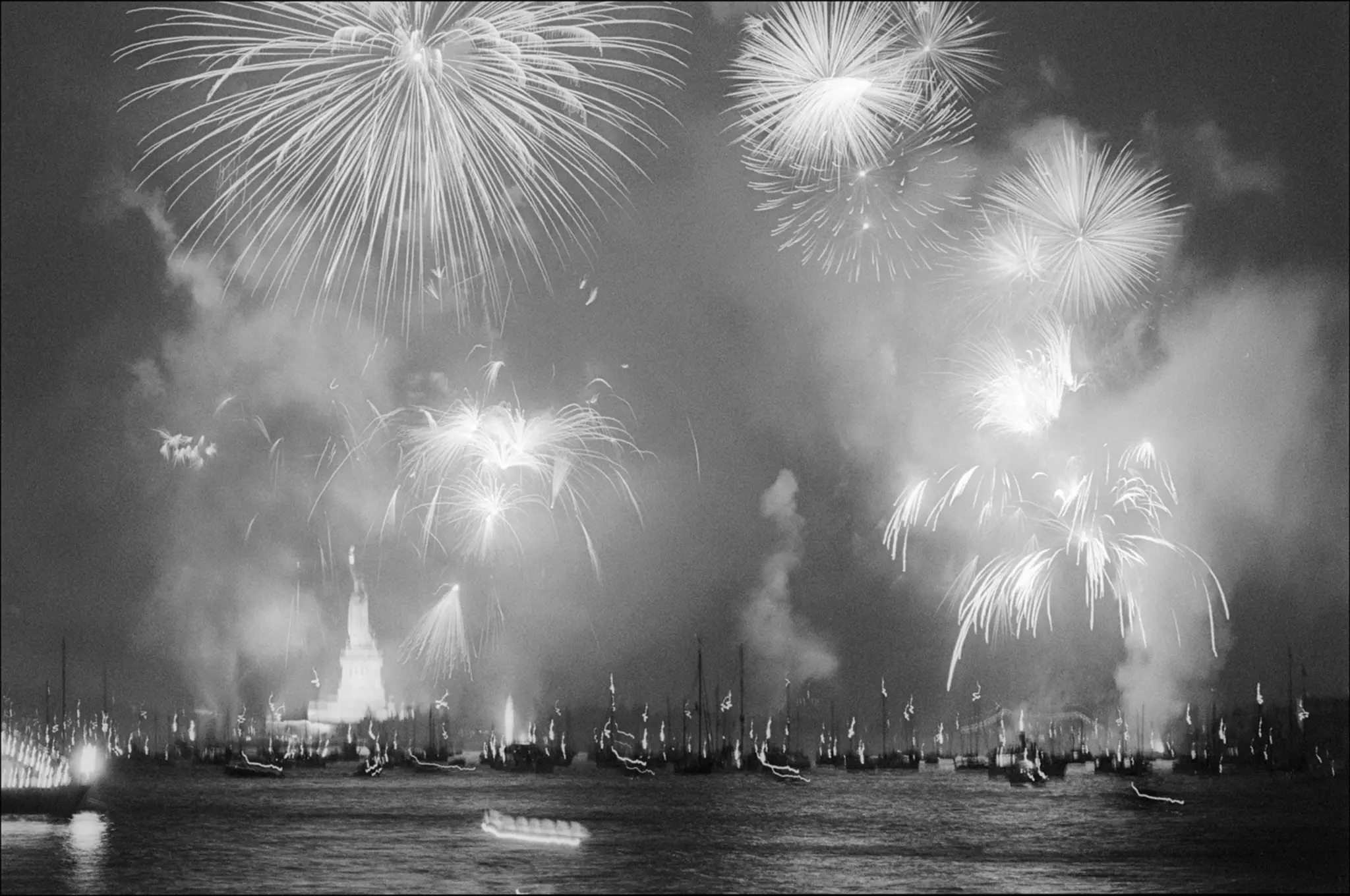 Fireworks fill the night sky over New York Harbor and the Statue of Liberty in celebration of America’s Bicentennial 50 years ago. Getty Images
