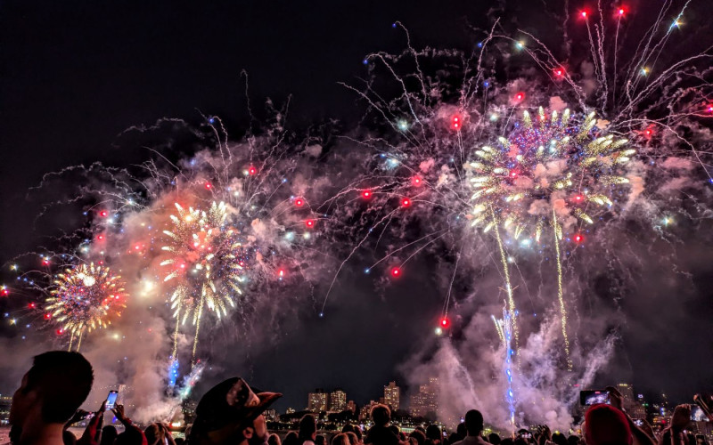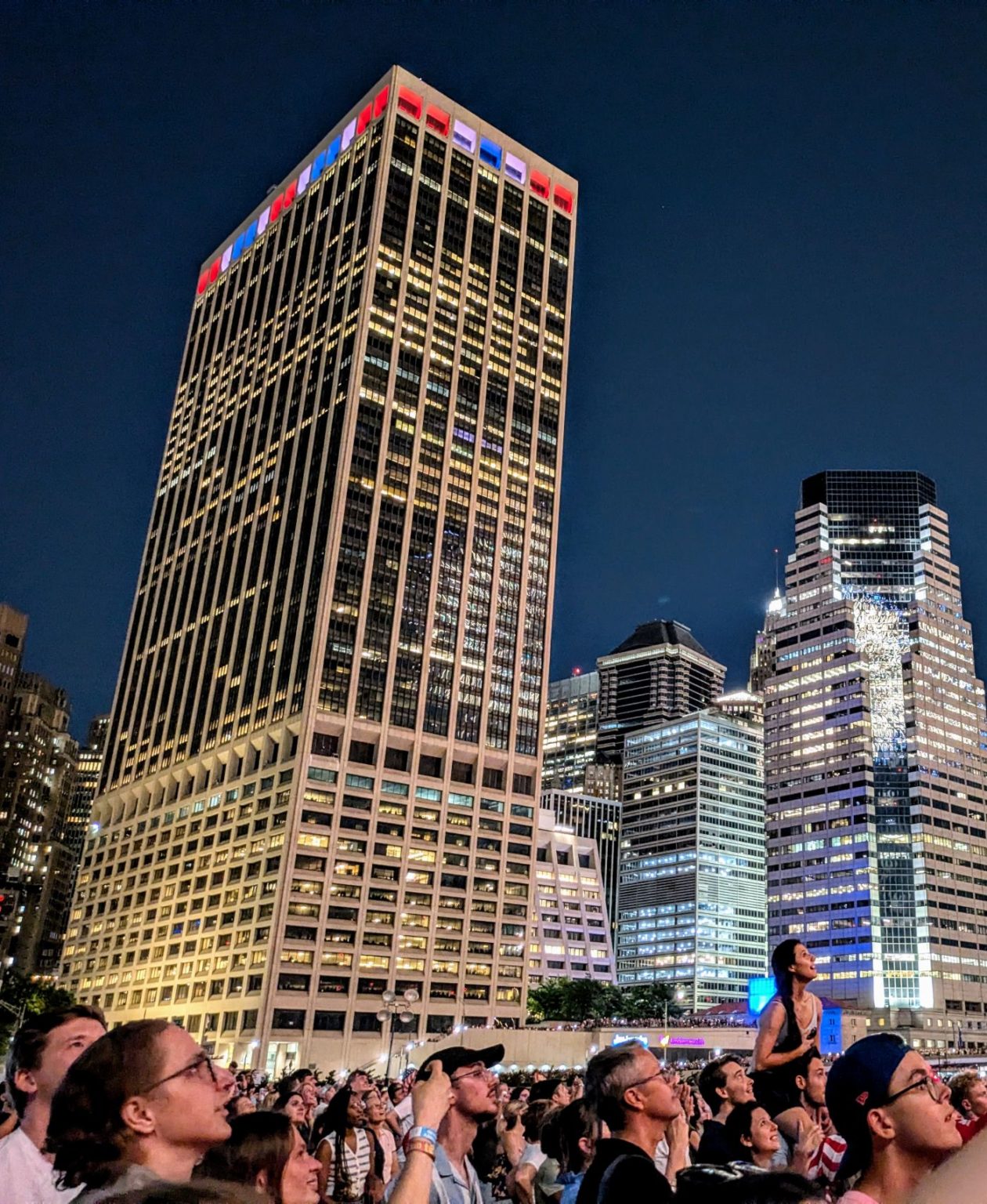 The Macy’s fireworks from the Downtown Heliport were pretty spectacular — the barges were right there in front of us and the show lasted a good 30 minutes. The best part? The docked ferries sounding their horns in approval after each round. And I heard through some folks that next year — 2026, the nation’s 250th anniversary — is going to be even bigger. The plan is to have barges along both the East River and the Hudson, so around the horn for double the show.