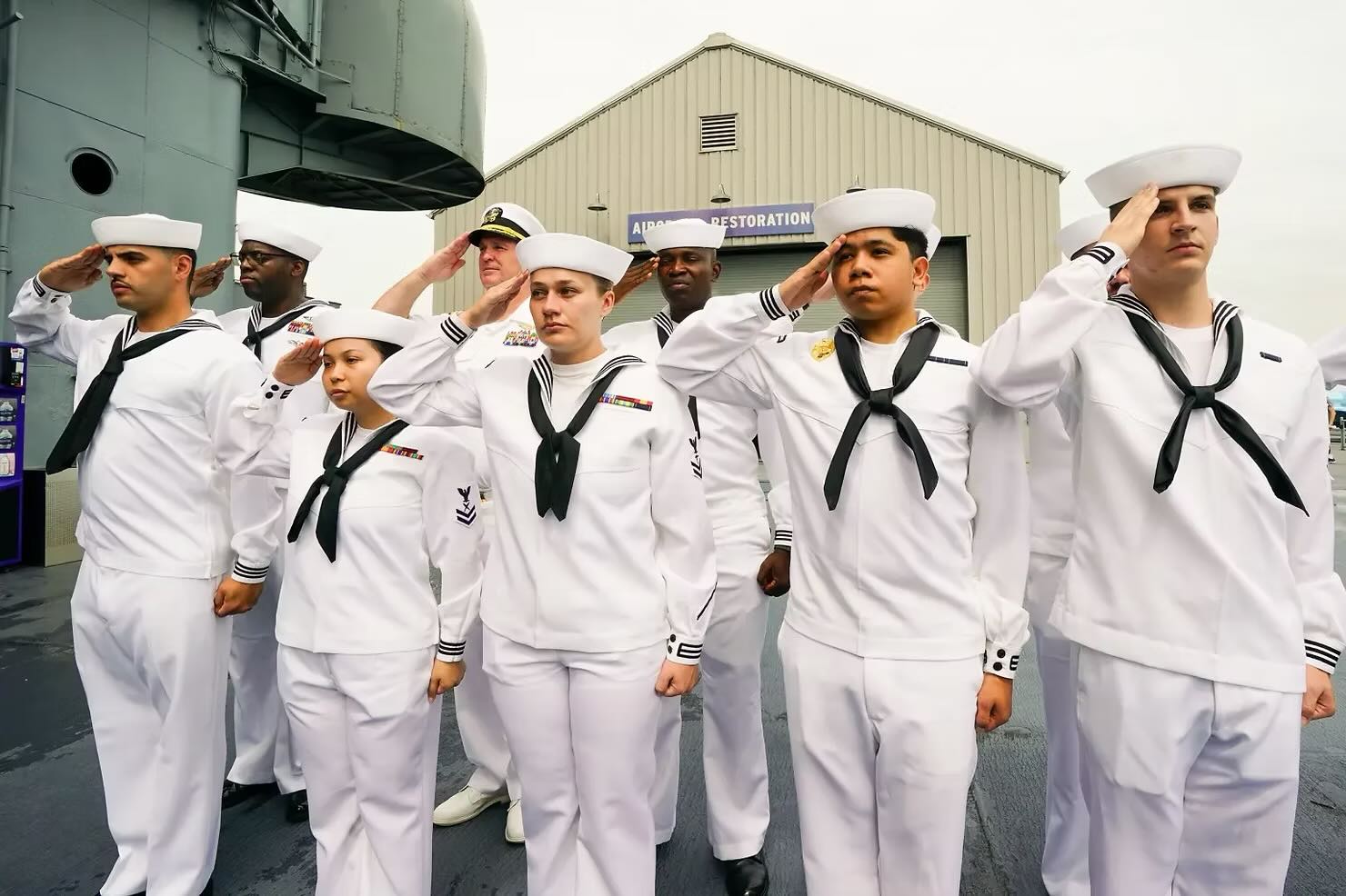 A color guard salutes aboard the Intrepid. Robert Miller