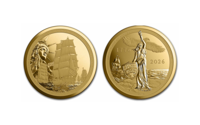 Available in copper, silver and gold, the medallion design reaches deep into American symbolism as it celebrates the patriotic milestone. The obverse depicts America’s Tall Ship, the Coast Guard cutter Eagle, leading the international flotilla into New York Harbor. The Statue of Liberty rises on her left, holding a torch aloft. The inscription reads: “The Port of New York and New Jersey and the USA welcome the Tall Ships of the World in Honor of America’s Semiquincentennial.” The reverse depicts Columbia, the female personification of the United States, who predates Lady Liberty. An American bald eagle soars overhead, with its wings spread in both a defensive and commanding posture. The inscription along the rim reads “Semiquincentennial of the United States of America – Freedom – Hope – Opportunity” with the dates 1776-2026.