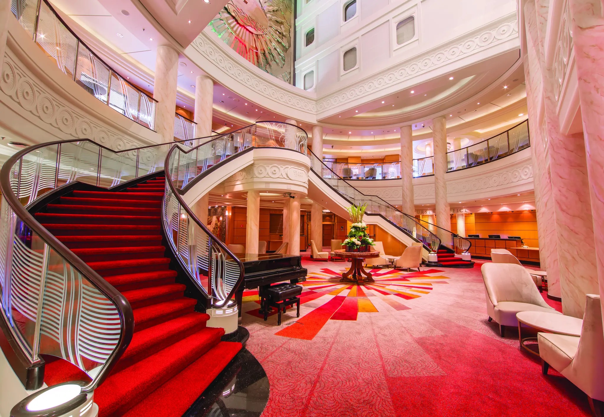 The grand lobby of the Queen Mary 2. Courtesy of Cunard
