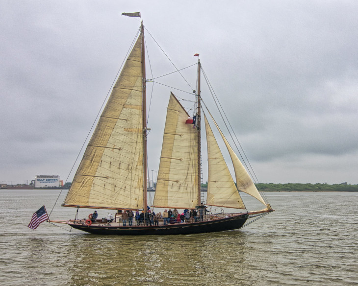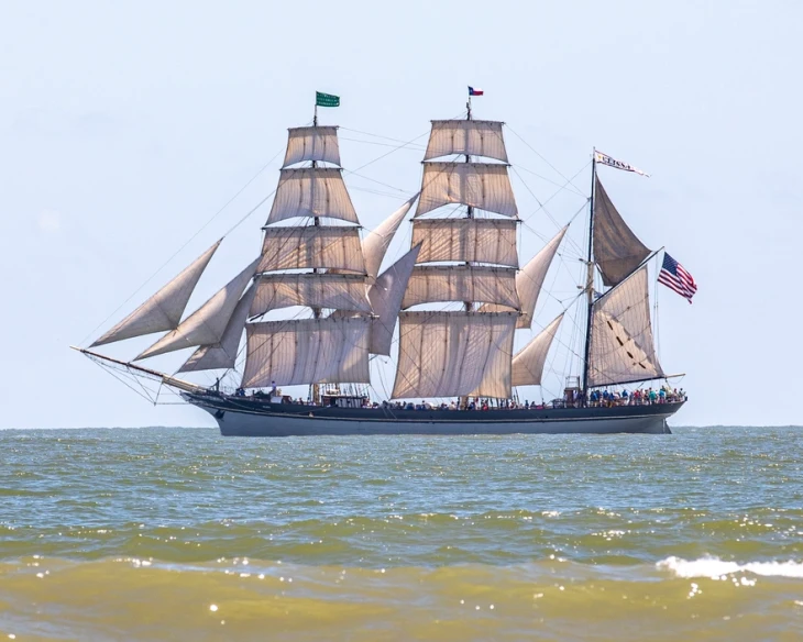 ELISSA, a 141-foot three-masted iron-hulled barque, is homeported in the Galveston Historic Seaport, where she serves as the official tall ship of the State of Texas, and conducts public tours and frequent local day sails. She has 10,890 square feet of sail and a usual crew of 42. She was built in Aberdeen, Scotland in 1877 as a merchant ship. Over the years, she has sailed under the flags of Norway, Sweden, Finland, and Greece. She was acquired by the Galveston Historic Foundation in 1975, extensively restored as a sailing ship, participated in the 1986 Statue of Liberty centennial in New York, and was designated a National Historic Landmark in 1990. Extensively refurbished in 2014, she remains one of the world’s oldest sailing hulls still in operation.